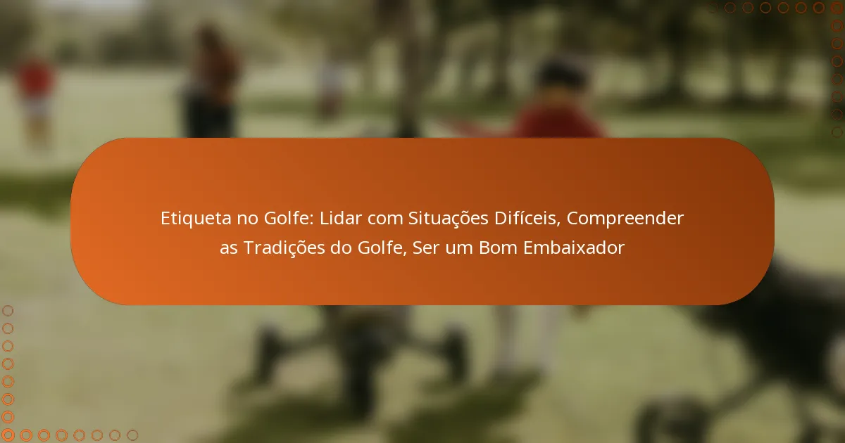 Etiqueta no Golfe: Lidar com Situações Difíceis, Compreender as Tradições do Golfe, Ser um Bom Embaixador