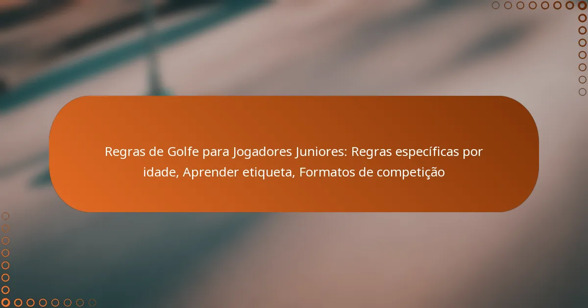 Compreender as regras de golfe para jogadores juniores é essencial para promover um ambiente seguro e agradável enquanto desenvolvem as suas habilidades. Regulamentos específicos por idade orientam os jovens golfistas na utilização de equipamentos e formatos de competição, enquanto aprender a etiqueta adequada promove respeito e responsabilidade no campo. Ao participar em vários formatos de competição, os jogadores juniores podem aumentar o seu prazer e domínio do jogo.